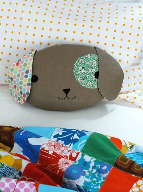 Try this cute puppy pillow from Tutsplus. The crafter uses the creative fabric to cover the ear and one eye to create a unique personality.