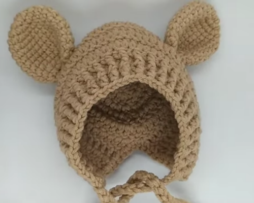 2. Crochet Bear Baby Bonnet For Beginners