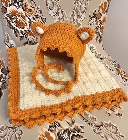You can make this super adorable fox bonnet from Cute Little Crochet for your newborn. All you need to know are the basic stitches to create this hat. Also, you can stitch this matched blanket with the same colors of yarn.