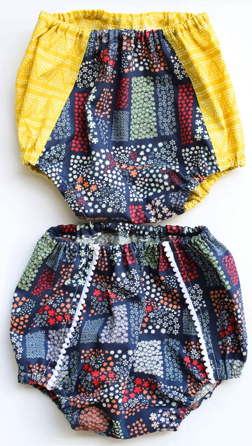 The polka dots and red bow make this bloomer stand out in the list. It looks super adorable and quite comfortable too. All you need is fabric, a sewing machine, elastic, measuring tape, and a few other supplies. Designed by Feather Flair Art.