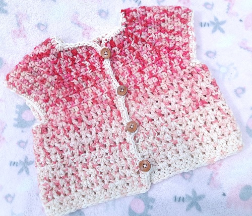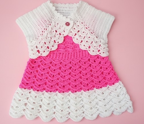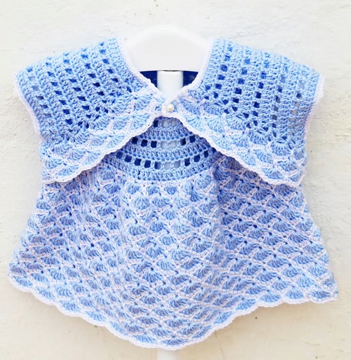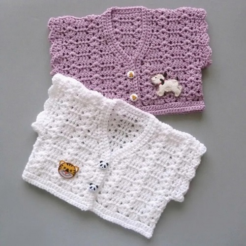 This bolero cardigan is a lovely option for baby girls. It’s crocheted using the shell and block stitch with a 4.5 mm hook. Check Crochet n Create for the complete process.