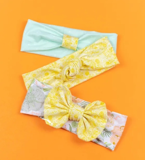 If you are new to sewing and looking for an easy hair accessory pattern, then check out Coral and Co. You will need 1/4 yard of knit fabric with a microtex needle.