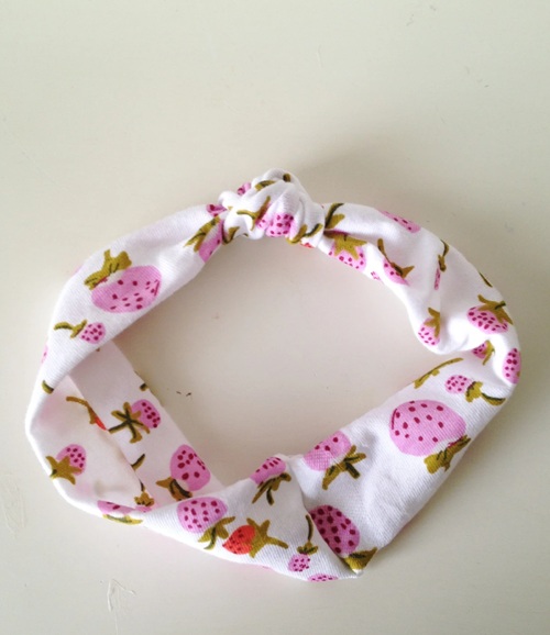 The playful strawberry print on crisp white fabric gives this headband a cheerful look. You can use a ballpoint needle with zig-zag stitch to make these, just like TheSaraProject did.