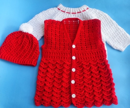 9. Crochet Baby Bolero Jacket and Baby Dress