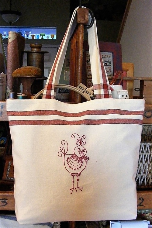 Ready to move beyond your basic tote? Live Creation has embroidered this bag, focusing on simple stitches and a minimalist style.