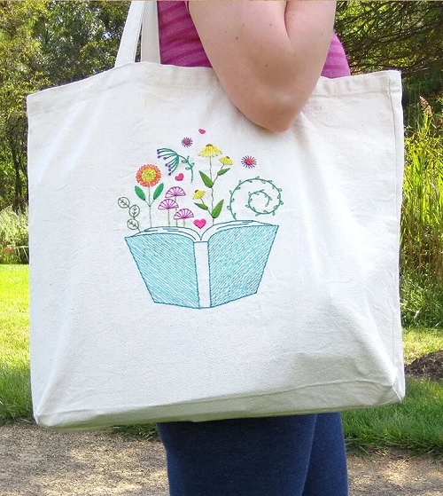 Show off your embroidery skills by decorating your tote bag with this artsy design. Beth Colletti has designed this bag, perfect for carrying your books or everyday essentials.