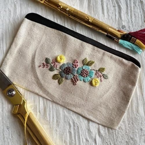 Forget about the oversized totes, and have a look at this compact cosmetic bag by Embroidery By Gossamer. You can use it to store stationery or makeup.
