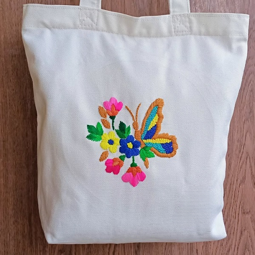 Learn how to embroider a butterfly on a tote bag with Rup Handicraft. All you need is some knowledge of basic stitches, such as satin, fishbone, backstitch, outline, and French knot.