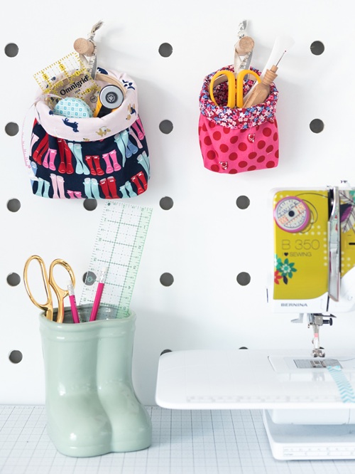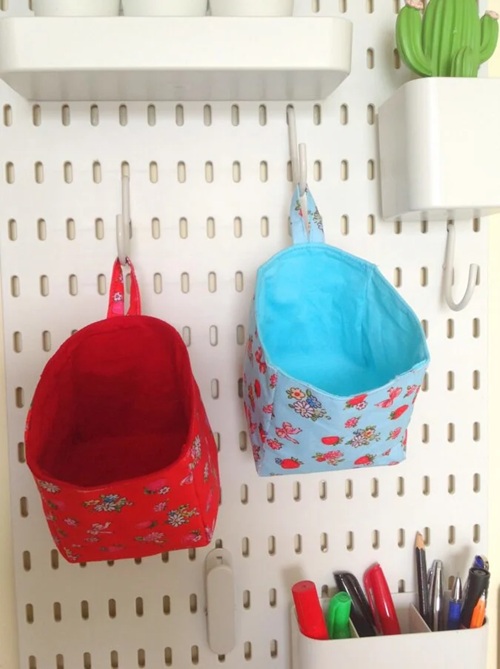 Have a look at this hanging sewing basket pattern by Sewcraftyme. It’s a simple and useful design that helps you organize your space in a very neat way.