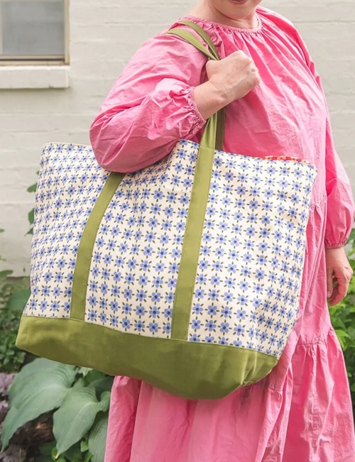 Do you have just 4 hours? Then you can easily try this oversized bag designed by Brittany. It has a lovely, tiny floral print with a coordinating green detail.