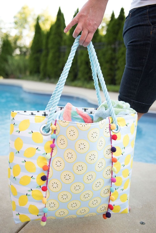 Check out this oversized beach bag with citrus prints that perfectly match beach vibes. So, without any further ado, go through Melissa’s article for crafting instructions.
