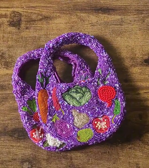 Look at this beaded veggie bag from JGRANTARTWORK. You can carry this at any party to showoff your beading skills among guests and friend.