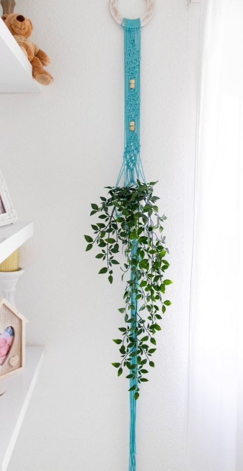 You can make this stunning plant hanger from Ilze Brumele. It is super easy to make and the best part is you can use any color of cord to match up with your home decor.