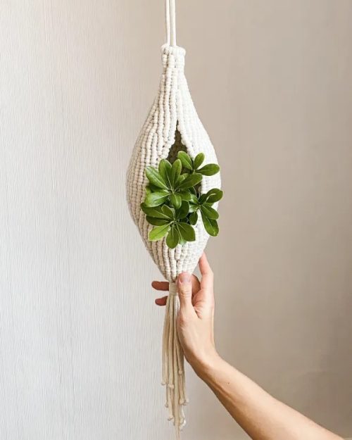 Learn how to make this macrame cocoon plant hanger from Tuija. It is perfect for intermediate skill level knotters. The creator has provided all the step by step instruction so you can easily follow it.