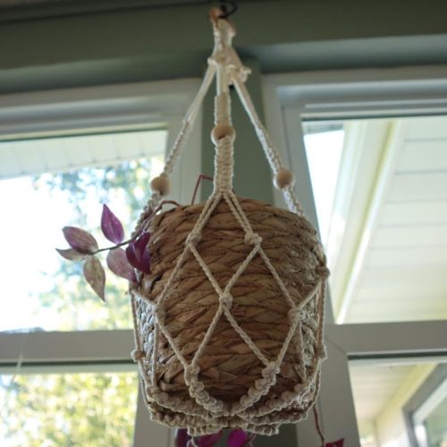 Crystal has created this beautiful plant hanger. It is super simple and perfect for every skill level knotters. You can gift this at any house warming party that will offers a bohemian vibe to any corner of their living space.