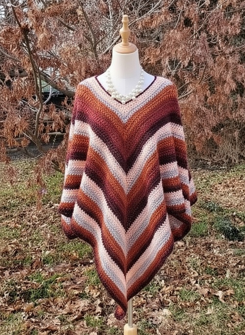 Want to create a poncho but are new to crocheting? This colorful striped poncho is the perfect project for you. Bag-O-Day Crochet gives a detailed tutorial with easy-to-understand steps.