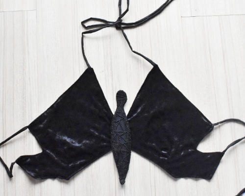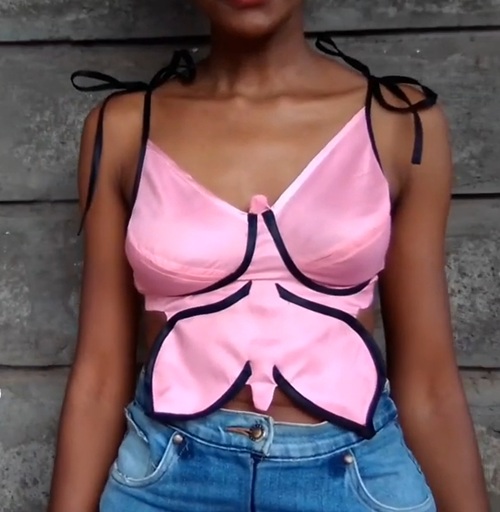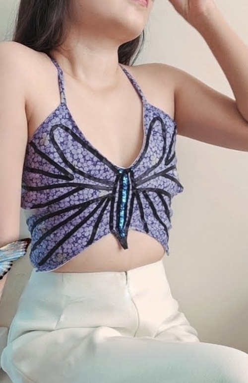 Sarina Tariq is behind this unique butterfly top. It attracts attention with a timeless black hue, a halter neck tie, spaghetti straps, and a butterfly-like appearance.