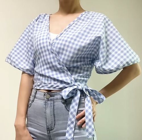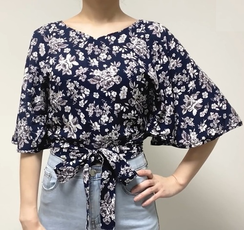 Are you looking for an easy-to-make top that looks stylish too? Look no further than AssunDIY’s creation. It features butterfly-style sleeves with a wrap design.