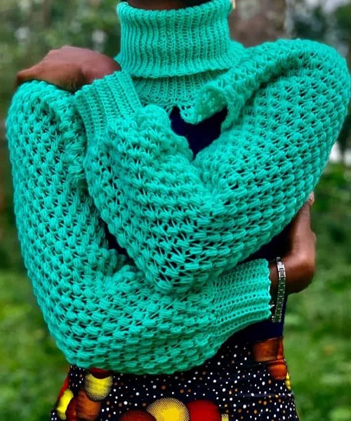 Begin your crocheting journey with this classy arm warmer sweater from Chenda DIY. It has cable textures with a turtleneck and attention to detail. Do, check out its free pattern!