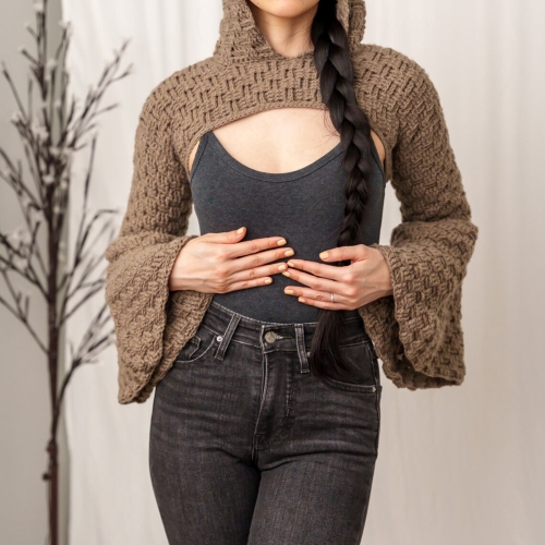 7. Basketweave Bell Sleeve Arm Warmer Hoodie