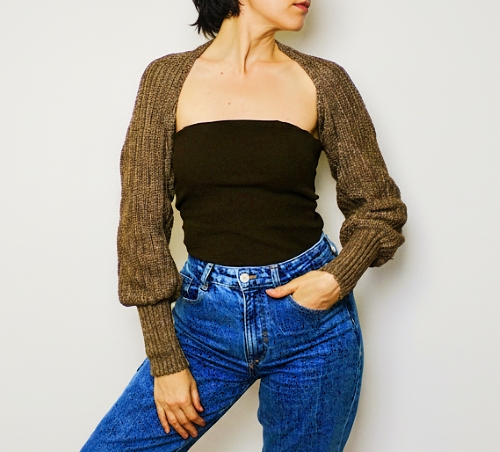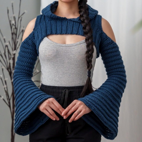 Put yourself in the spotlight at special occasions with this arm-warmer sweater. Its bobble stitch and bell sleeves are the major highlights. You can wear this crocheted accessory over any outfit. Zx Crochets is behind this piece.