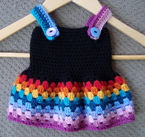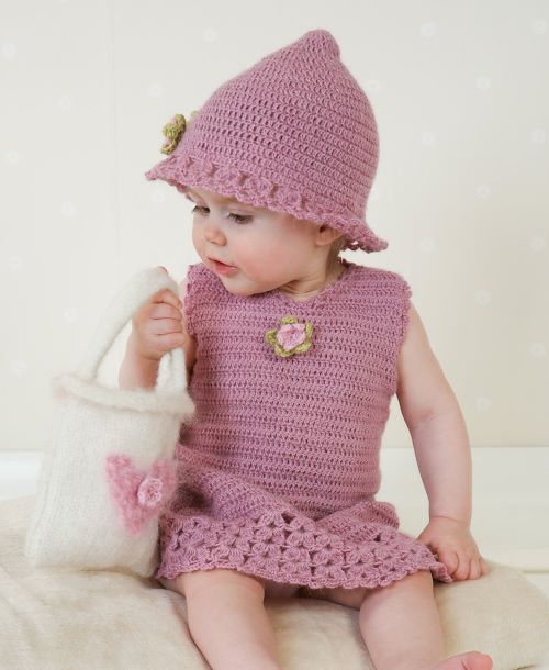 Look at this adorable crocheted baby dress at Garn Studio. Its free pattern can be adjusted for a 1-month-old to a 4-year-old baby with some simple tweaks.