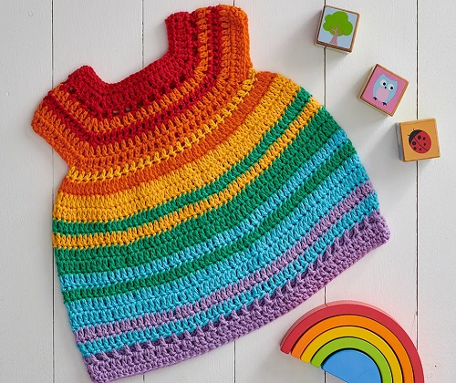 Create your baby’s very first crochet dress with Rachel Pascoe’s pattern. The best part? You will need only 5 hours to make this lovely granny tunic outfit.