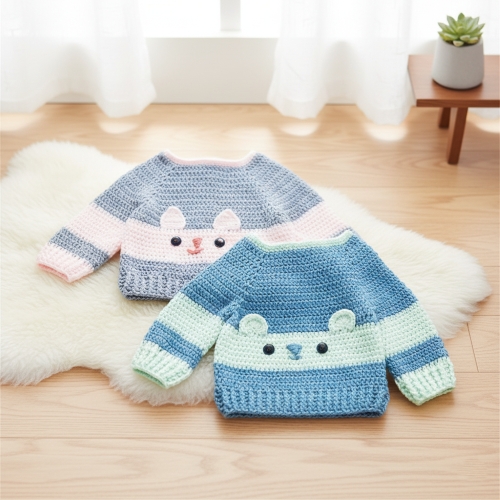 Make your baby the dapper one in the crowd with these kitty and bear sweaters. Want to crochet a similar pair? Check out Yarnspirations for the stitching details.