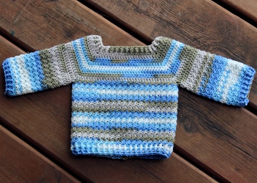 Start your crochet journey with this super-easy crochet sweater pullover by Briana Kepner. It can be layered over onesies or pants.
