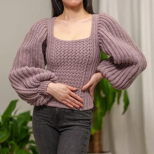 Does a square neck wearable make you look gorgeous? If the answer is yes, then you should crochet this balloon sleeve sweater by TCDDIY.