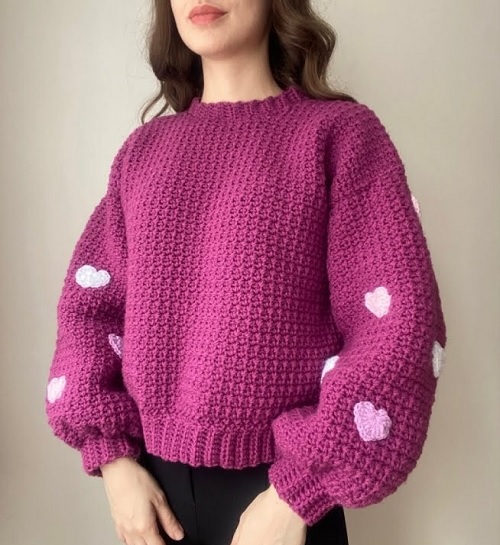 6. Handcrafted Heart Balloon Sleeve Sweater