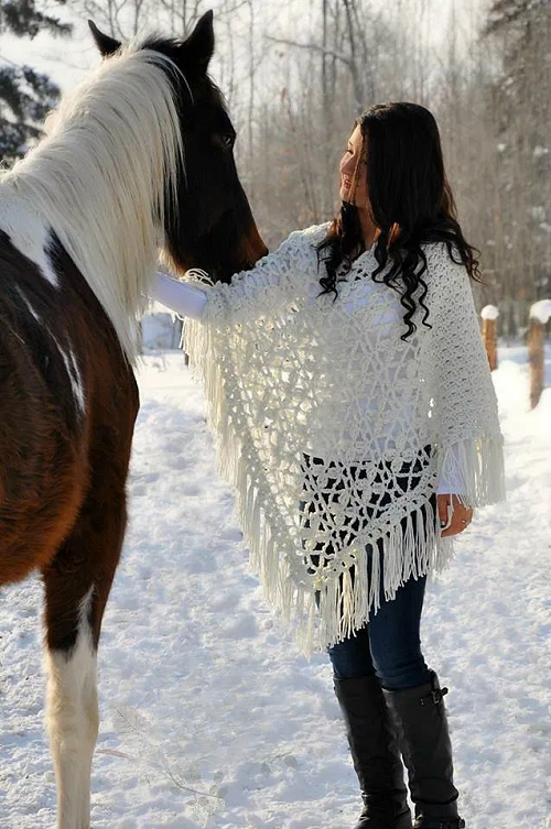 Isn’t it amazing how a simple design can elevate your outfit? The lacey butterfly poncho by Stephanie Kline is what you need. Newbies can also make it quickly.