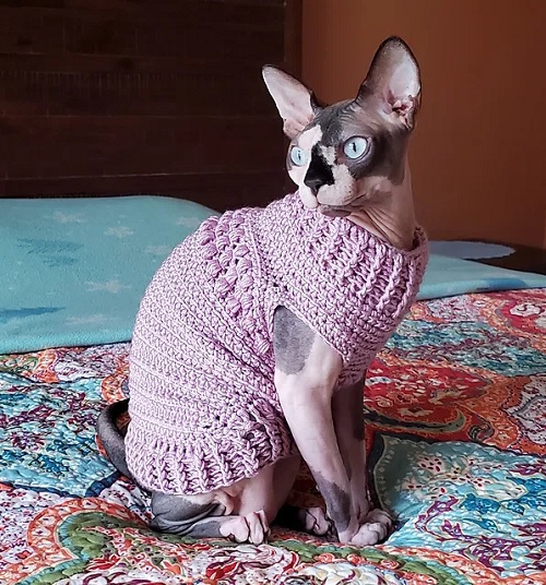 Whether you’ve a cold-sensitive Sphynx or want to showcase your cat’s fashionable side, these crocheted sweaters are the perfect option. These winter wearables ensure your cat stays warm in style.