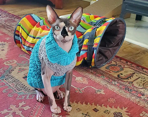 Make this cute and stylish crocheted sweater for your cats from Last Minute Laura. It is a fast and fun project that results in an adorable, custom-fit garment for your furry friend.