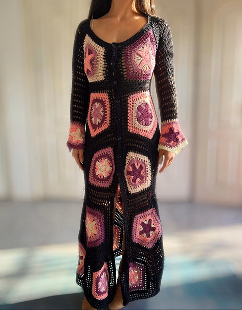 3. Crochet Pentagon Star Granny Maxi Dress