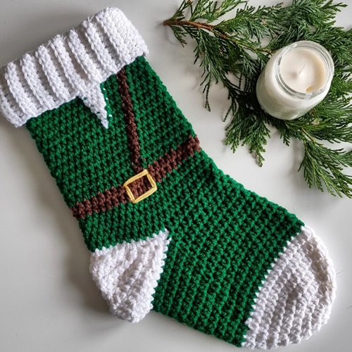 Looking for a stocking with a little geeky design? Ninja Cat Crafts has taken inspiration from the little Legend of Zelda. All you need is acrylic yarn in three different colors and 5mm hook.