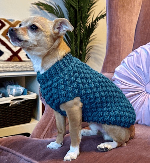 Make your pooch the stylish one in the neighborhood with this bobble sweater. Check out Yarnspirations to create one with single crochet and bobble stitching techniques.