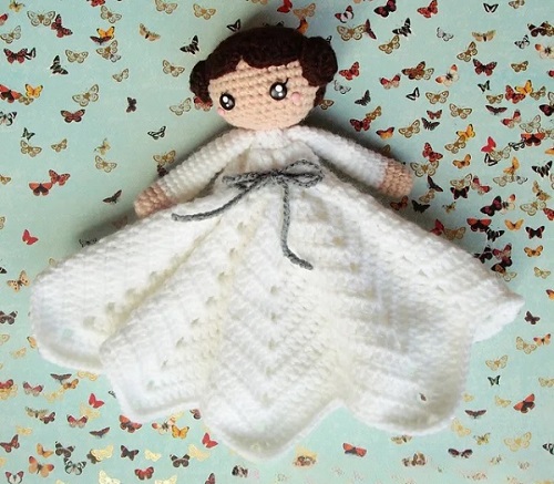 Stuffsusiemade has crocheted this doll lovey by taking inspiration from the Star Wars franchise. It stands out with the signature hair buns and innocent eyes of Princess Leia.