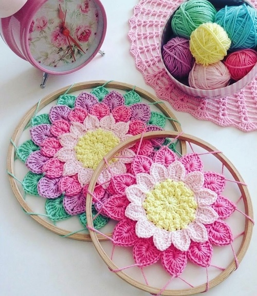 This collection of crochet floral home decor is perfect to style up your boring walls. These are designed to be lightweight and easy to hang.