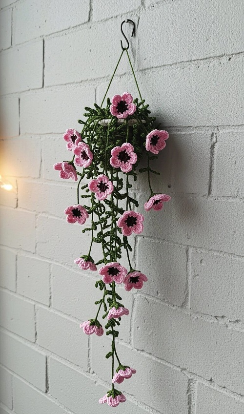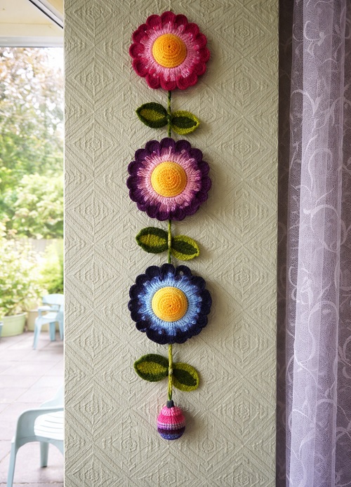 Look at these vibrant flowers designed by Lorraine. It is super quick and completes in less than 2 hours. You can change the color of your yarn to match your home decor.