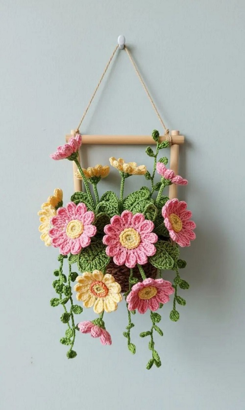 Create this cute daisy wall hanging pattern from Craftsideasdesign. A perfect design for intermediate or advanced beginner skill level crocheters. Go through the blog for more instructions.