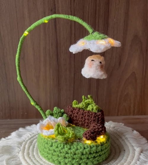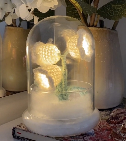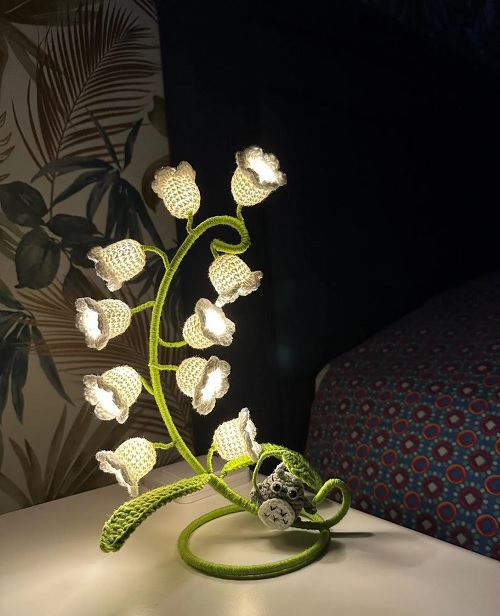If you are a big fan of the lily of the valley plant, then you must check this crochet lamp by Woknit. When you turn ON the lamp, it creates quite a cozy and warm atmosphere.Â
