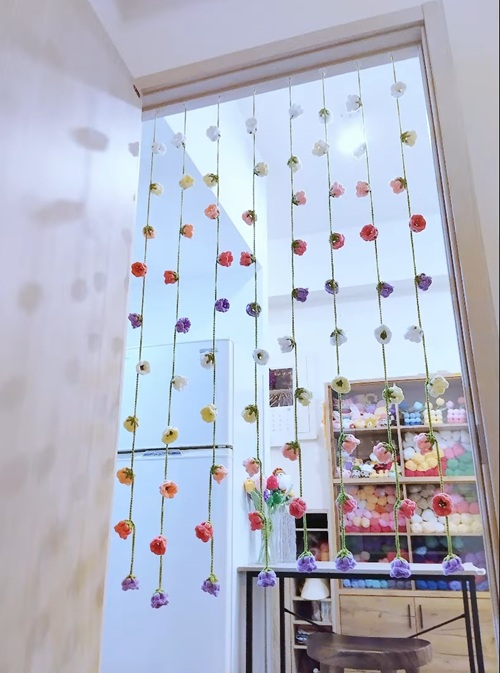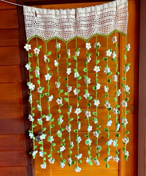 Don’t want to use the same old fabric curtain on your living room door? Consider this crocheted one with gorgeous lily of the valley blooms. Silva Crochet made tiny flower motifs, but you can increase their size for a better look.