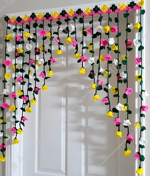 Sunita Mohan is the brilliant crochet artist behind this aesthetically appealing floral door hanging. The cheery, bright colored 3D floral motifs with a vining look set the mood in the doorway.