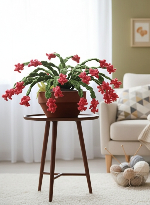 Crochet this stunning Christmas cactus by Secret Yarnery. You only need 100% acrylic yarn, floral wires, and 5 mm & 4 mm hooks for this lovely.