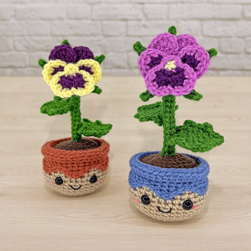 If you love pansies, this pattern by Joey Diehl is a must-try this weekend. They are crafted with medium-weight yarn and a 5mm crochet hook.