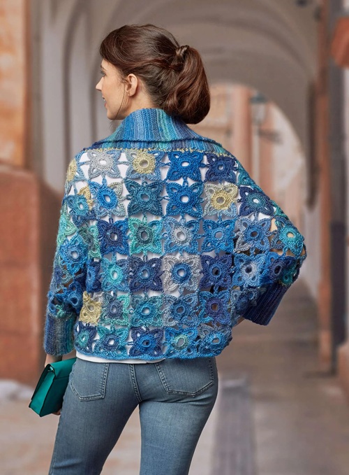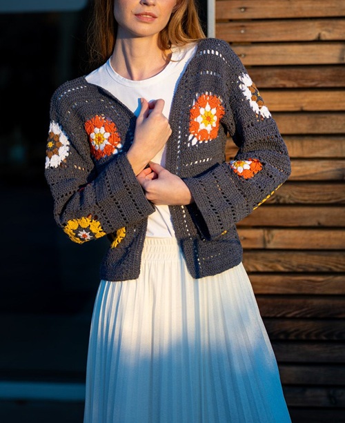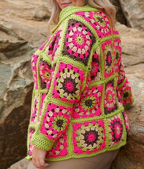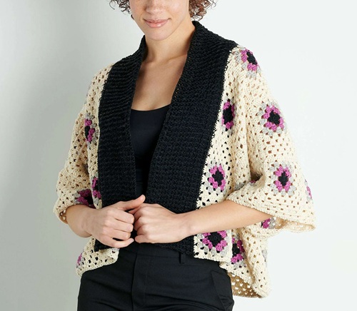 Show off your love for granny squares with this stunning granny-style cardigan. Yarnspirations has designed this garment by combining various flower motifs.