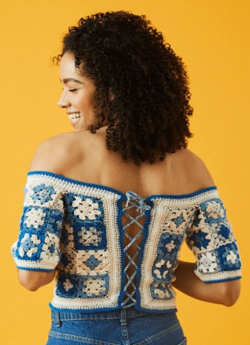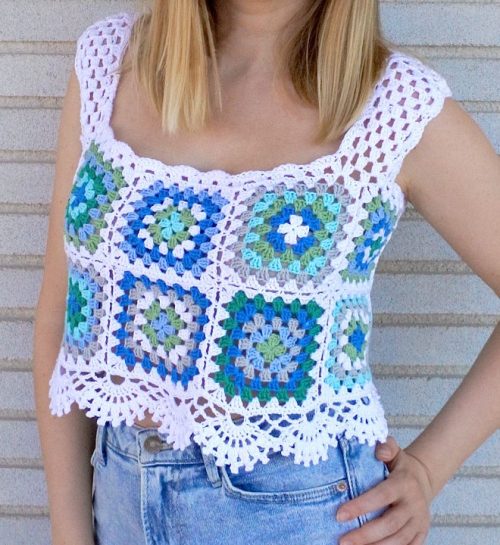 Want to make this crochet granny square top just like Jane did? Then you should definitely go through the blog, where you can find all the instructions. It is super easy to make, as you need to create some squares and attach them.
