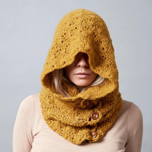 This collection features crocheted hooded cowls, the perfect solution for staying warm, cozy, and effortlessly stylish this winter. These accessories do the job of both a hat and a scarf.