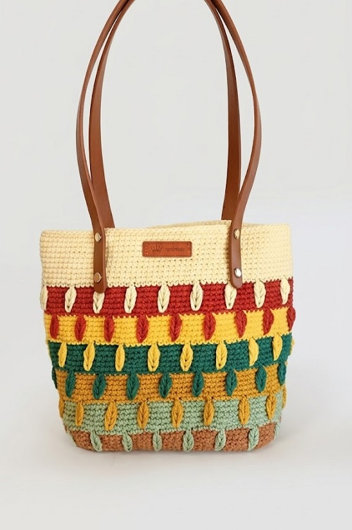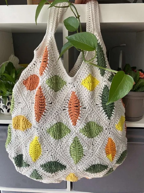 6. Colorful Crochet Leaves Tote Bag